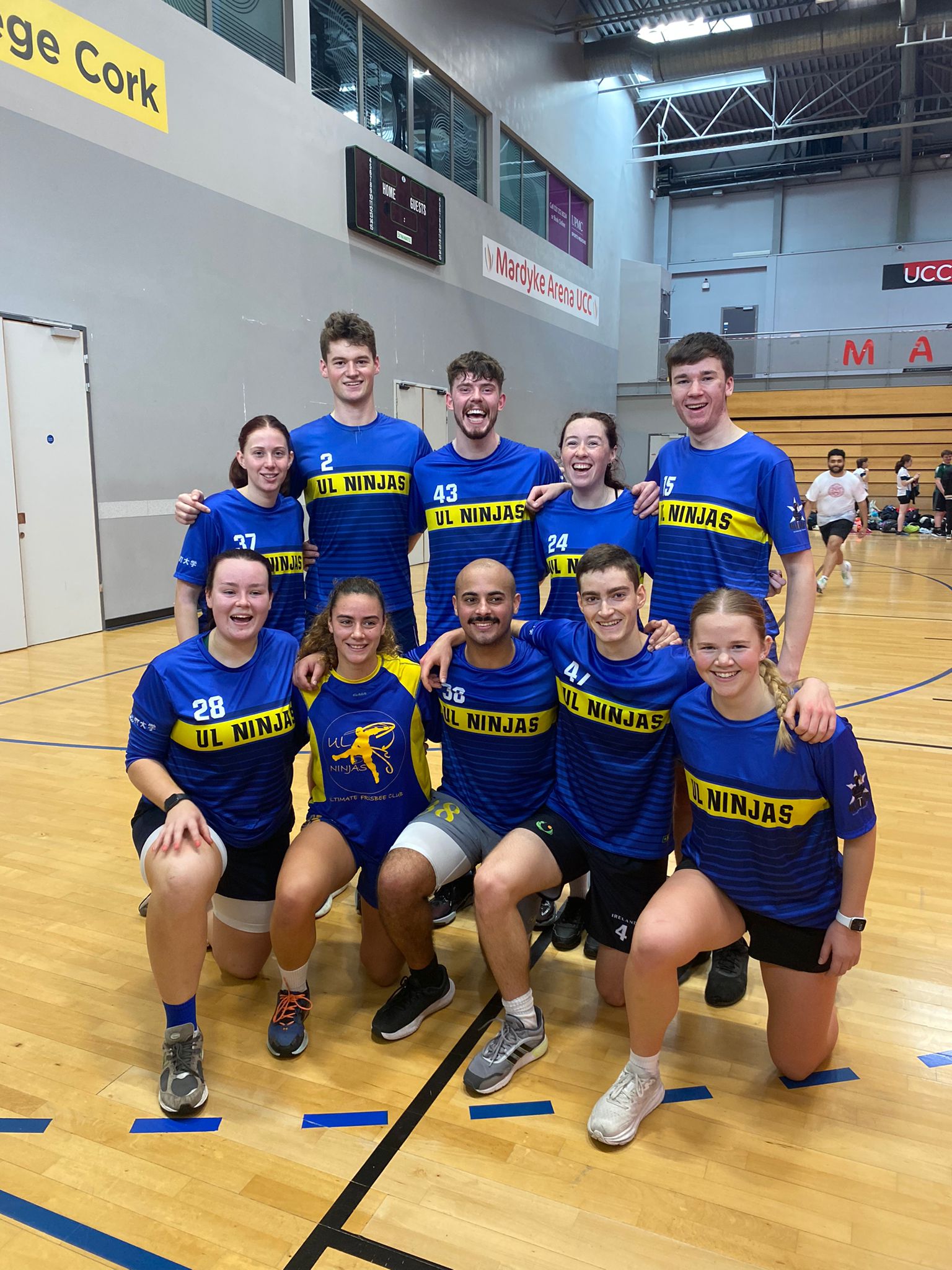 On February 15th/16th, the Ultimate Frisbee Club hosted Indoor IVs and we sent 3 teams. Our 1st team stormed through the weekend without a single defeat and took the top spot in a very competitive final against old rivals, DCU Ultimate. Well done to 1st Year Student Ben Martin for being awarded MVP of the Final. Our 2nd team, made up primarily of 2nd year players, showed great determination and finished in 11th place. Our 3rd team, which featured a lot of our new recruits from the season with some more experienced leaders finished in 16th place.