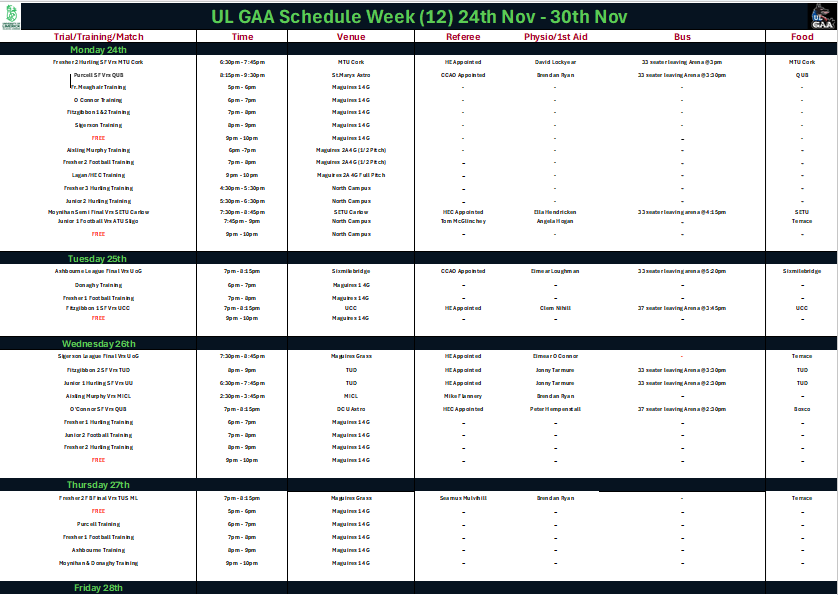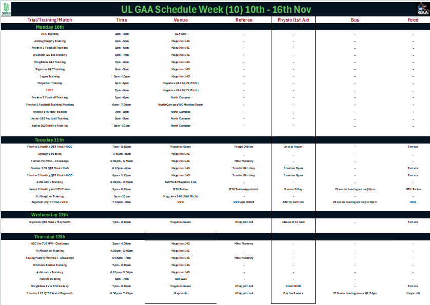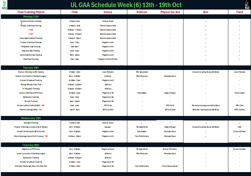 More details will be made available on our Twitter account @ul_gaa or by email once you have registered.