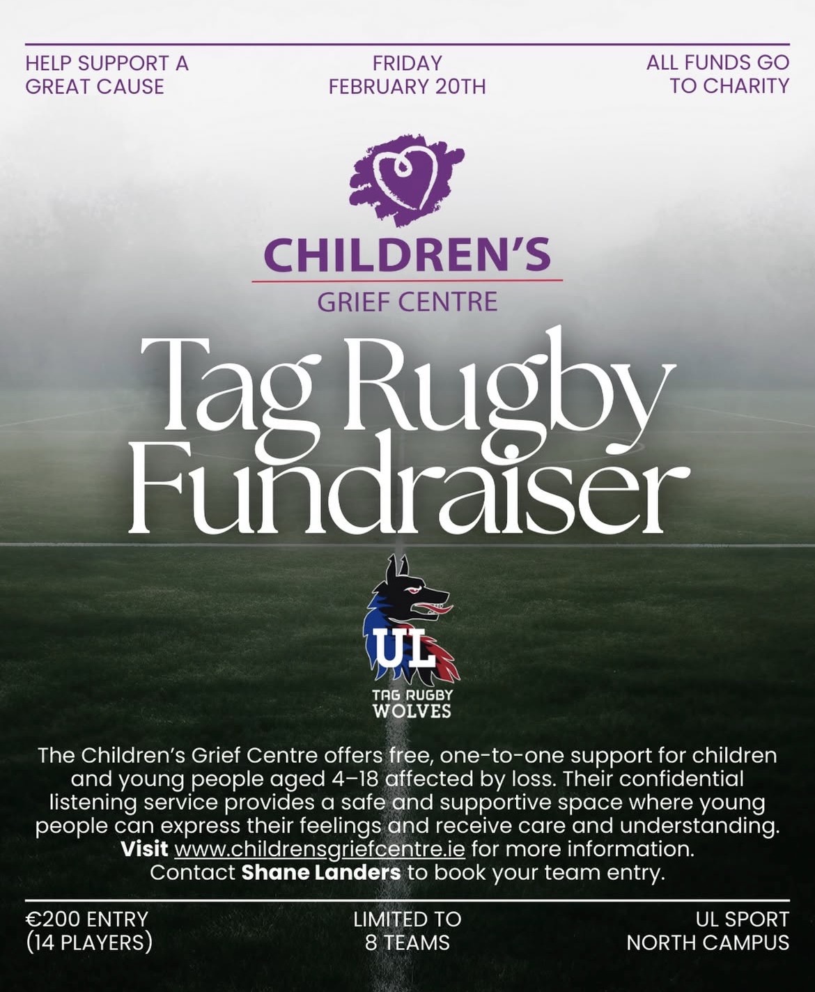 Join UL Wolves Tag Rugby for a charity blitz supporting Children’s Grief Centre, helping children and young people through grief and loss in the Mid West.