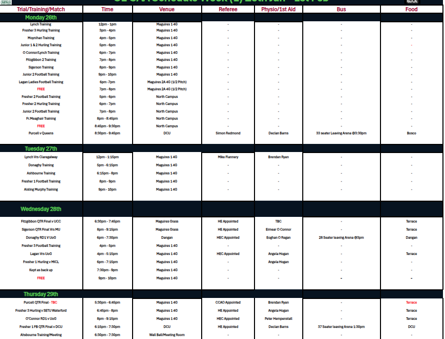 Sigerson Cup FixtureUL (SF) V TBCLocation: University of LimerickMeeting: Maguires Dressing Rooms |