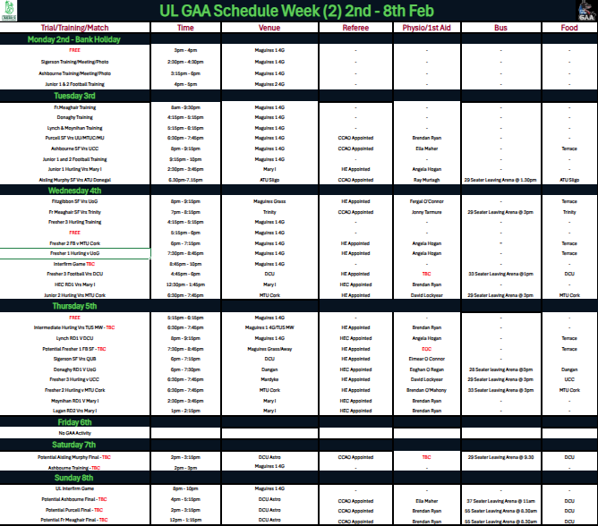 More details will be made available on our Twitter account @ul_gaa or by email once you have registered.