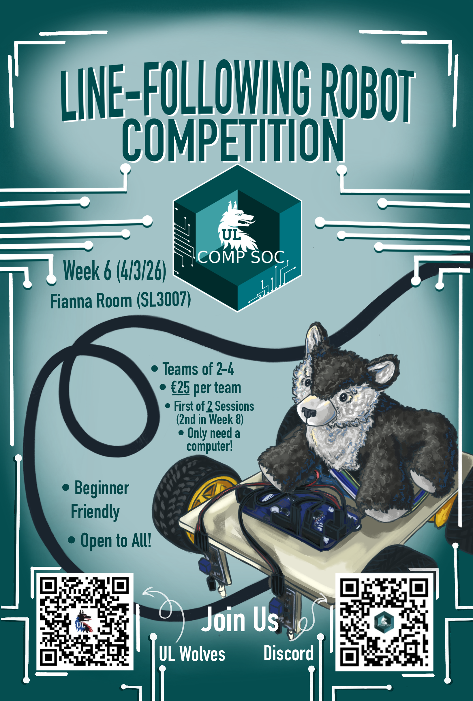 There will be two sessions, the first in Week 6 (4/3/26) being the intro and workshop for the Competition and the second in Week 8 (18/3/26) for the competition itself.
