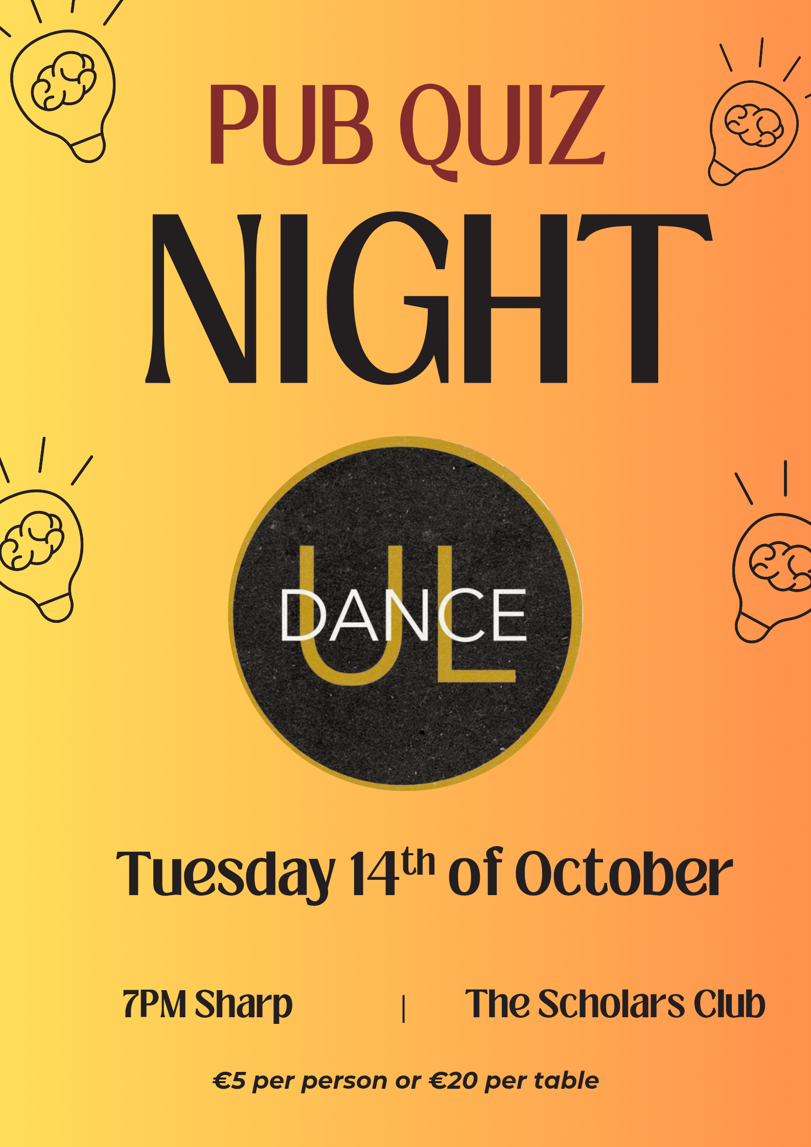 These pub quizzes are a great way to have fun with your friends, meet new people and get to know more about the committee behind Dance UL!