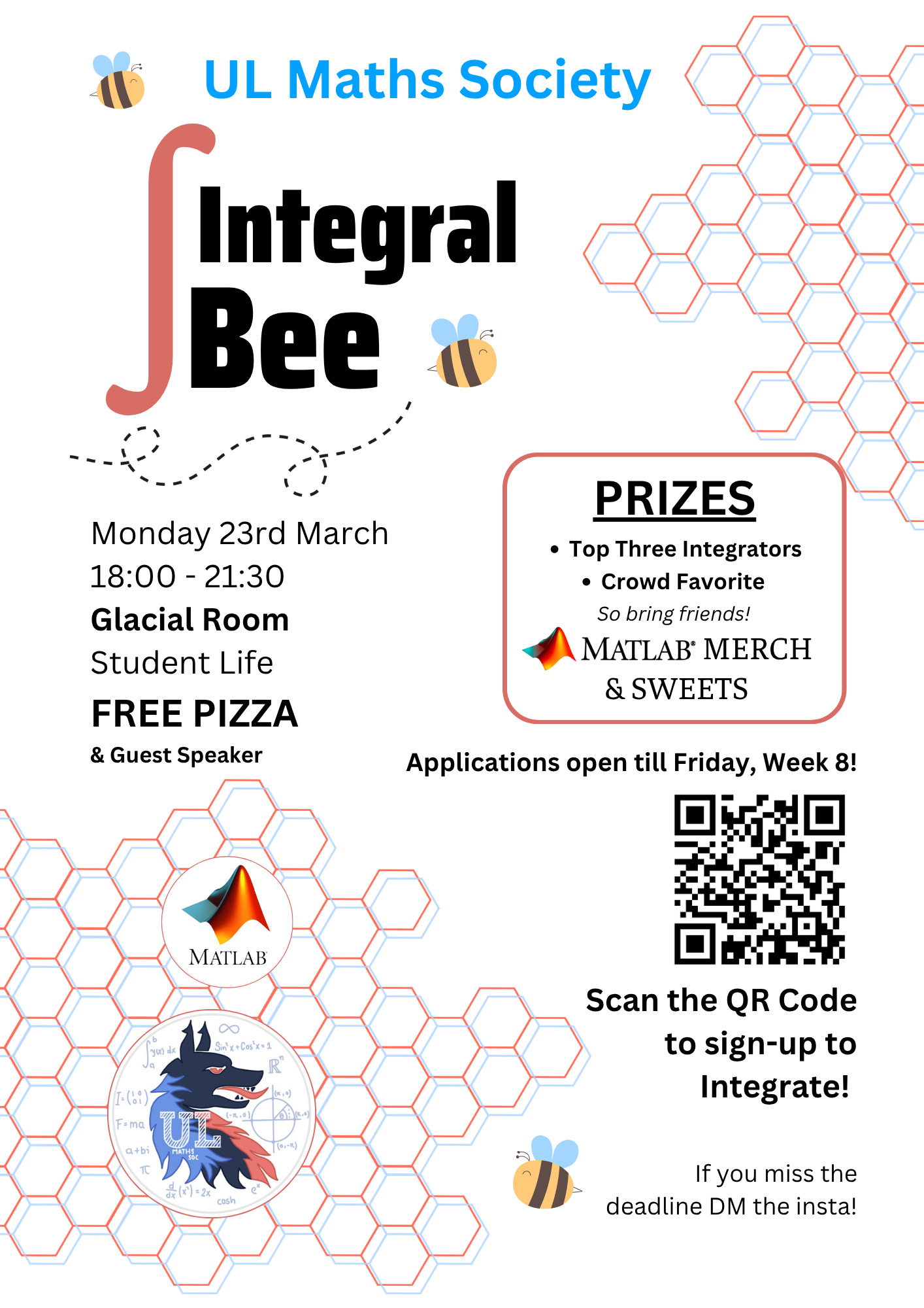 Integral Bee is Back! Join us in the glacial room on Monday to integrate, eat pizza, and listen to a surprise guest speaker!!