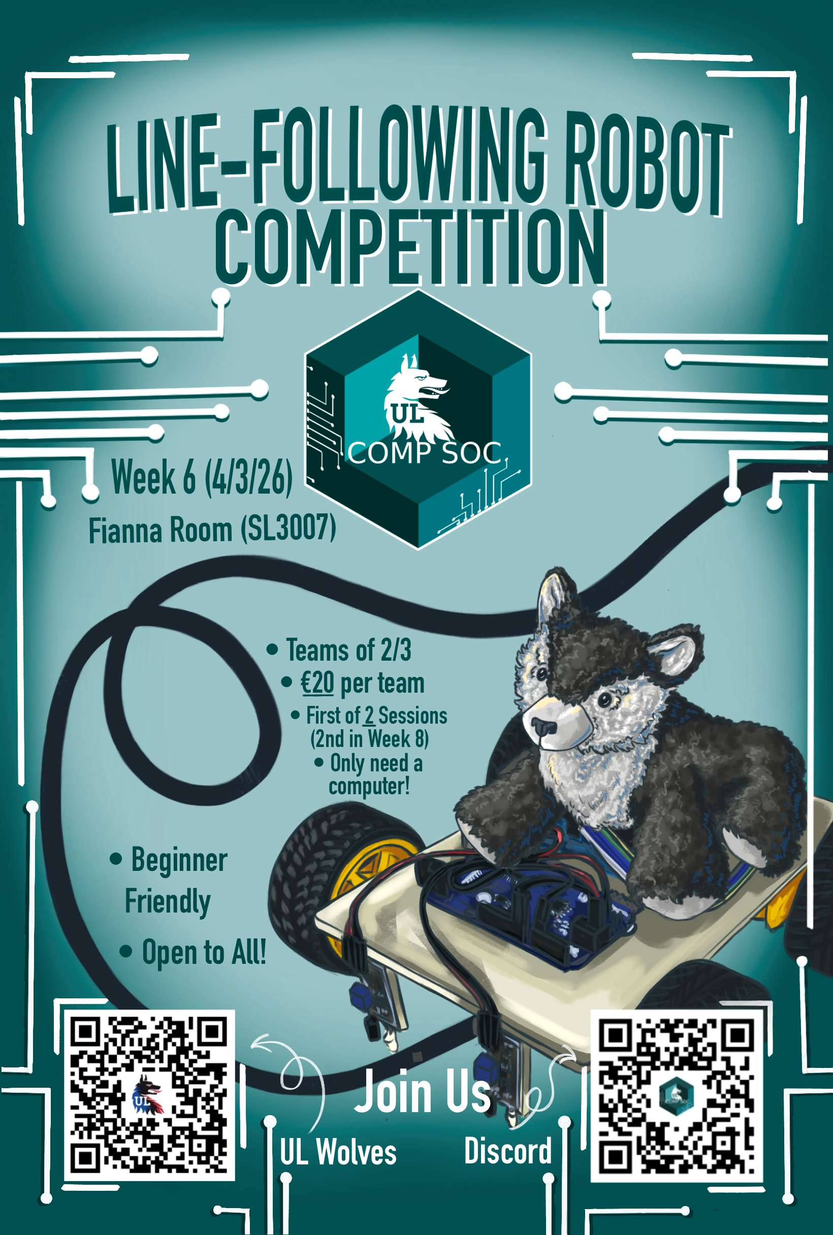 There will be two sessions, the first in Week 6 (4/3/26) being the intro and workshop for the Competition and the second in Week 8 (18/3/26) for the competition itself.