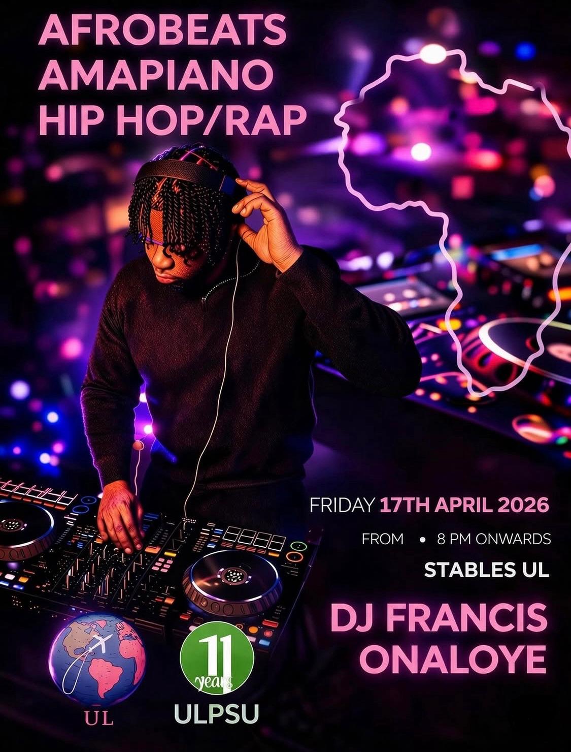 "A fantastic night exploring the cultural melting pot that is UL awaits you! Join us in the Luna Theatre on April 13th and 14th from 6-8pm for two (wildly different) nights of performances organised by ULs phenomenal societies!This is a collaboration event you won't want to miss, with UL's Drama Soc, International Soc, MENASA Soc, Ukrainian Soc and the PSU all taking part!Get your tickets here: https://ul-drama-society.sumupstore.com/product/international-culture-nights"
