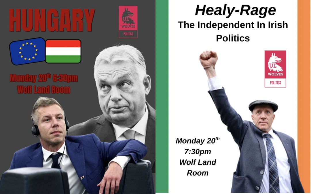 "Hungary and Healy-RageJoin Politics Society Monday the 20th at 6:30pm in the Wolf Land Room for our Members Meeting were we will be discussing the major national and international events of the last week. A week is a long time in Politics and we've seen that both nationally and internationally over the last few days. We'll be delving into two major topics. Firstly we will be looking at the recent Hungarian Elections which saw Péter Magyar's, Tisza party oust Viktor Orbán's Fidesz after 16 years in power, becoming a historic moment in modern Hungarian Politics.Lastly the role of the Independent TD in Irish Politics. Following the resignation of minister Michael Healy-Rae we anticipate that the events of the last two weeks and the role of politicians who occupy this space will be in sharp focus.Hope to see you all there!"
