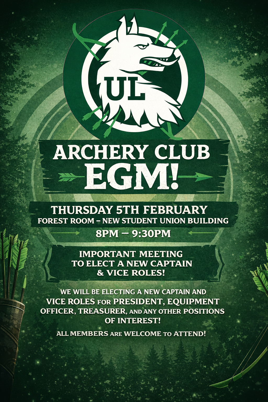 "Hey everyone! ?We are holding an EGM to elect a new Club Captain, and we are also looking for Vice roles across the committee, including: - President - Treasurer - Secretary - Equipment Officer - Health & Safety Officer - Public Relations OfficerThese roles are a great way to get involved, build experience, and help shape the future of the club. If you’re interested but would like to learn more before committing, feel free to reach out to us on Instagram (@ularchery) or by email at ularchery@gmail.com. We’re always happy to chat!All members are welcome, so come along and get involved! "