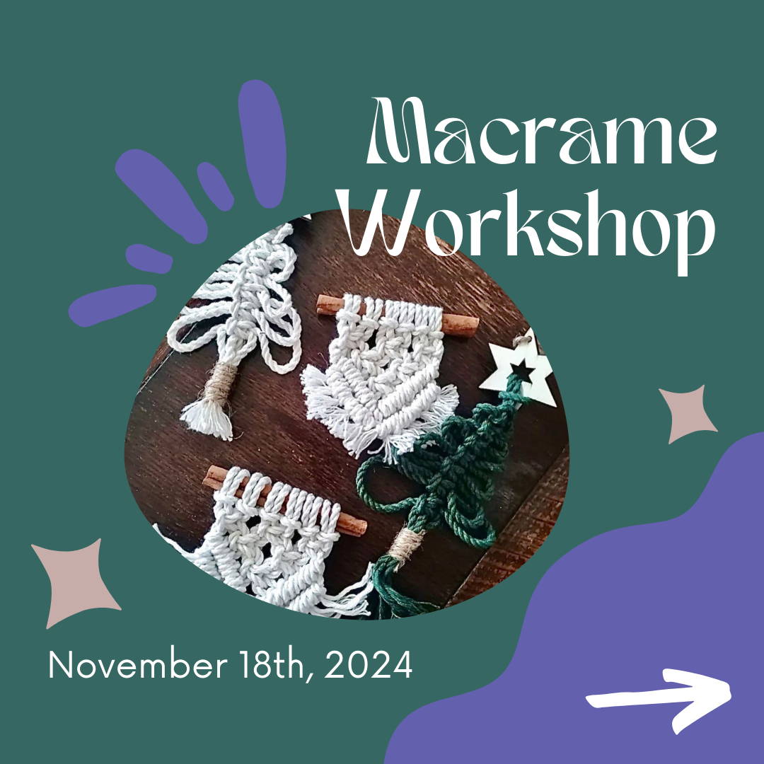 Join us for a macramé workshop where you'll learn to make two little holiday ornaments. We hope you'll have a fun evening with us :)