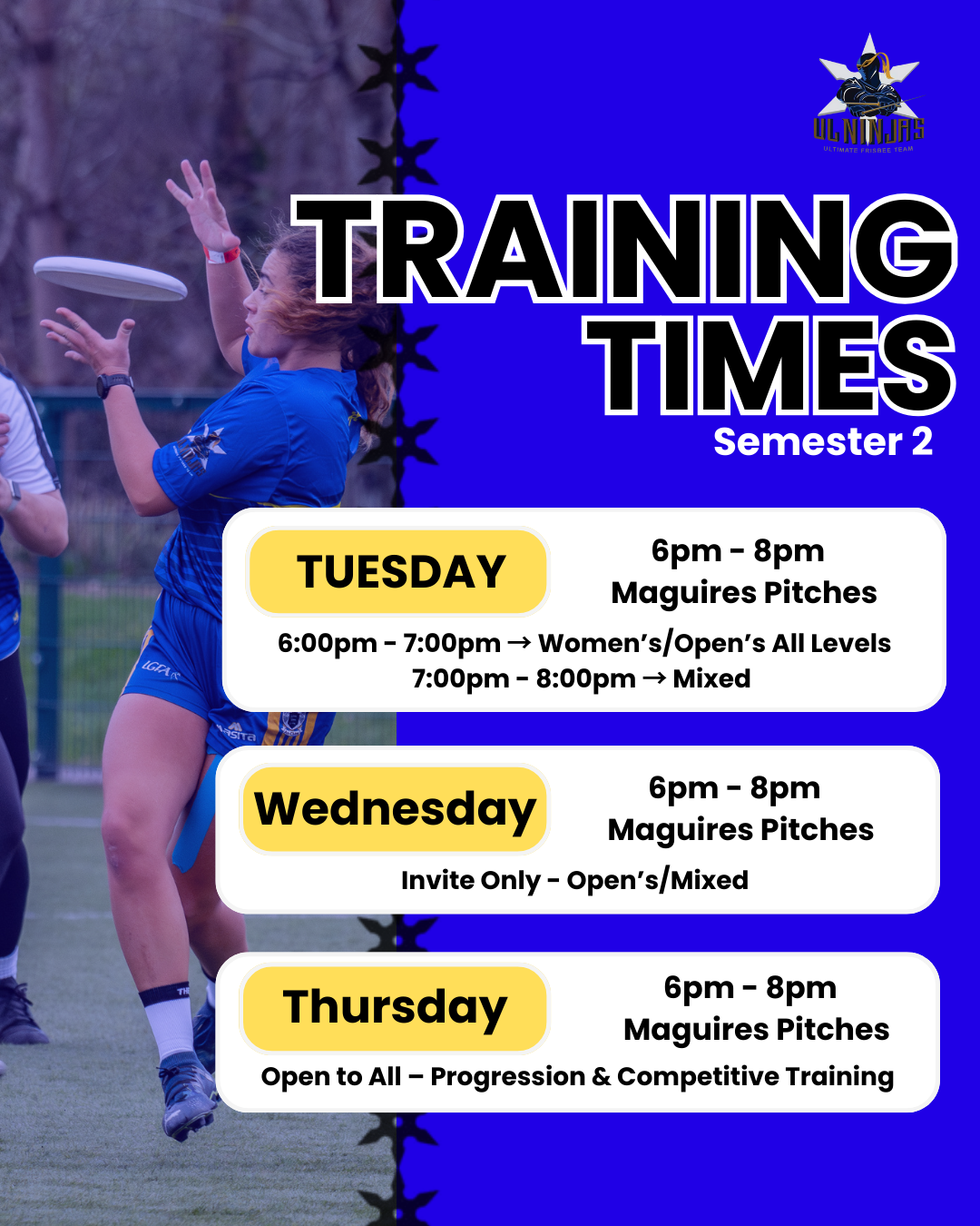 UL Ninjas are back from Week 1!!!Don't forget your Dark Jersey, White Jersey, Water and boots.Please Note Week 1 training might end earlier due to refreshers but depends on numbers on the day. We can't wait to see you all back at training !!! Read More »